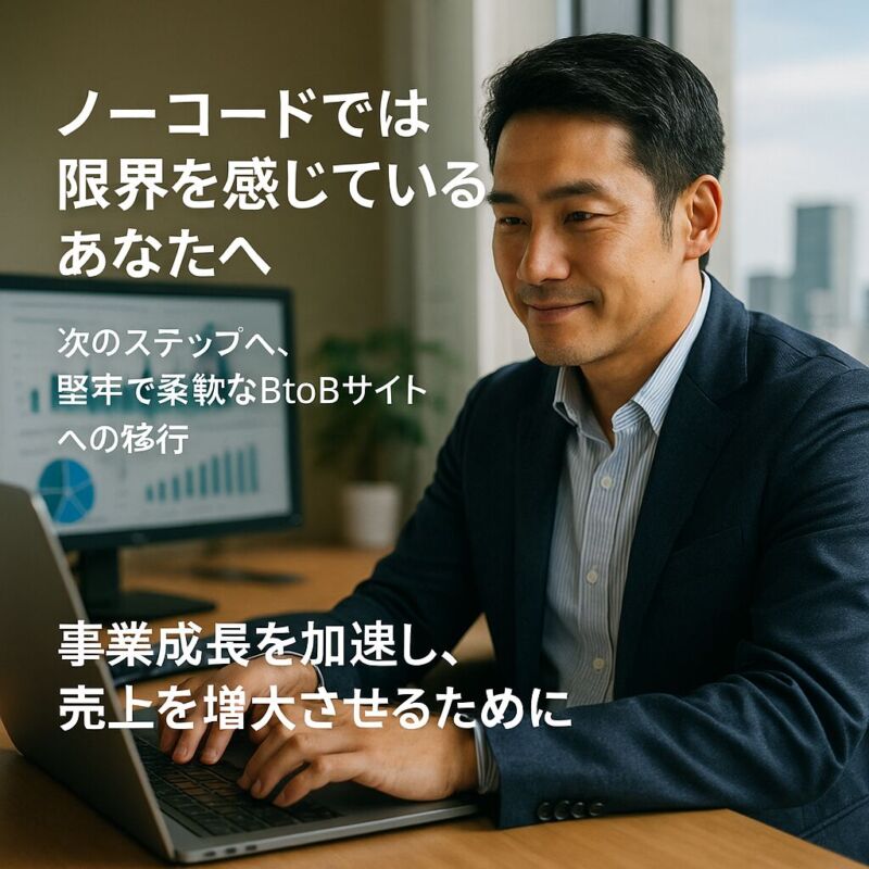 ノーコードで構築したBtoBサイトの機能限界に直面し、顧客からの苦情が増える一方で、取締役会への報告期限が迫っていませんか。 見積もり機能の使いにくさや商品検索の不便さは、表面的な問題にすぎません。本当の脅威は、競合他社に遅れを取り、システム選定失敗の責任を問われるリスクと、月額コストが売上増に見合わないROI悪化の現実です。 しかし、これらの課題には確実な解決策があります。 適切なプラットフォーム選定とデータ移行の手順を踏めば、機能限界による顧客不満を解消し、むしろ営業部長として評価される移行計画を提案できます。実際に、同様の状況から本格システムへ乗り換えた製造業企業では、売上を3倍に伸ばした事例も存在します。 この記事では、あなたの不安を解消する具体的な移行手順と、取締役会で自信を持って提案できる費用対効果の明確な根拠をお伝えします。