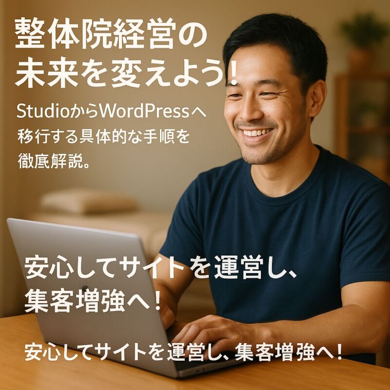 大阪で整体院を経営されているあなた、Studioで作ったサイトの集客力に限界を感じていませんか?月3〜4人の新規客で頭打ちの現状に、近隣の大手整体チェーン出店の知らせが追い打ちをかけている状況。 WordPressへの移行で集客を劇的改善したくても、「SEO評価が下がったらどうしよう」「現在のデザインが崩れるかも」という不安で踏み切れずにいるのではないでしょうか。実際、移行に失敗すれば検索順位の下落で廃業リスクまで抱えてしまいます。 しかし、正しい手順で移行すればStudioの限界を突破し、AI記事量産とSEO強化で集客を一気に伸ばすことが可能です。技術知識がなくても安全にデザインを再現し、Googleの評価を維持しながら移行する方法が存在します。 この記事では、10年間で数百件の移行を成功させてきた実績をもとに、失敗しない7つの手順とSEO維持の裏技を完全公開します。 移行への不安は当然です。でも正しい知識があれば、あなたの整体院も必ず集客力を向上させられますよ。 -
