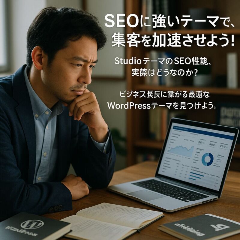 StudioテーマでSEO効果が出ない現実に直面し、3ヶ月間のブログ運営でもPV数500以下という停滞状況に頭を抱えていませんか? 「StudioテーマはSEOに弱い」という情報を目にして、せっかく作ったサイトが検索上位表示されず、クライアント獲得という本来の目的から遠ざかっていく不安を感じているでしょう。年末の繁忙期前に集客基盤を確立したいという切迫感の中で、テーマ選定のミスが事業成長の機会損失に直結するリスクを考えると、夜も眠れない状況かもしれません。 しかし、適切な分析と対策により、この状況は確実に改善可能です。 この記事では、StudioテーマのSEO性能を客観的に検証し、WordPress集客テーマとの具体的な比較データをもとに、あなたのコンサルタント業務に最適なテーマ選定基準をお伝えします。 実際に数多くのクライアント案件でStudioテーマの課題と解決策を検証してきた経験から、技術的な改善点だけでなく、ビジネス成果に直結する実践的なアプローチをご紹介しますね。 -