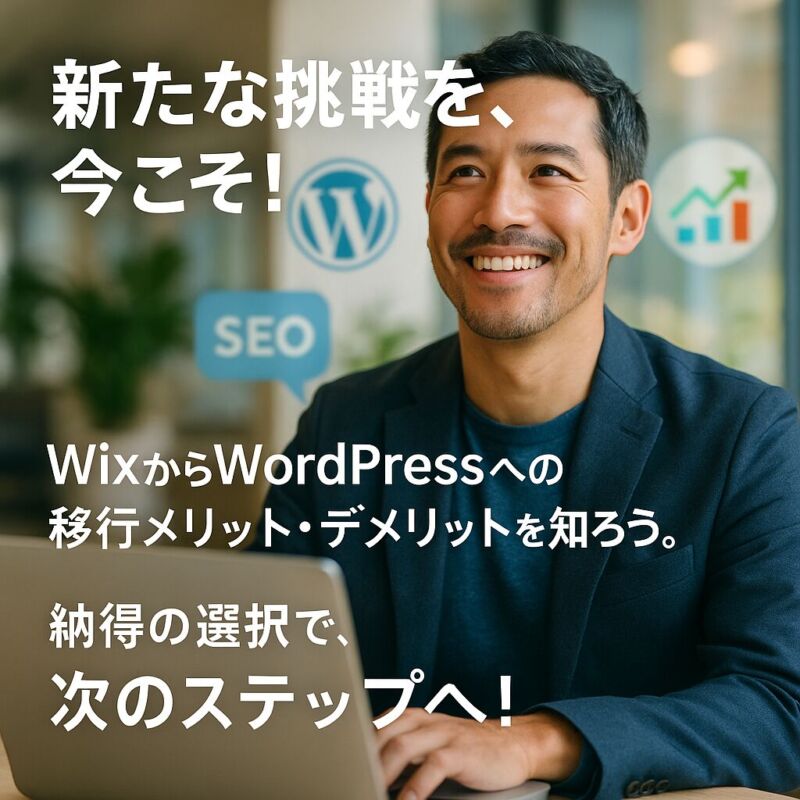 Wixで個人コンサルタント事業を運営するあなたが、サイトの集客効果に限界を感じているなら、それは決してあなたのせいではありません。実際に多くのコンサルタントが同じ悩みを抱えています。 しかし問題は、このままの状態で競合他社のWordPressサイトが検索上位を独占し続けることです。あなたの専門性やサービス品質に関係なく、プラットフォームの機能差だけで顧客獲得機会を失い続ける現実。これは事業成長にとって致命的なリスクとなります。 でも安心してください。適切な移行戦略があれば、WordPressへの移行は十分成功できます。 この記事では、あなたと同じ状況から WordPress移行を成功させた事例をもとに、移行判断の明確な基準と具体的手順を解説します。SEO評価を維持しながら移行する方法、運用負担を最小化するアプローチ、そして年内移行を実現する行動プランまで、実践的な情報をすべてお伝えします。 読み終える頃には、移行への不安が確信に変わり、あなたの事業成長に最適な判断ができるようになるでしょう。 移行で後悔する人と成功する人の違いは、正しい情報と適切なタイミングを知っているかどうかです。一緒に最適解を見つけていきましょう。 -