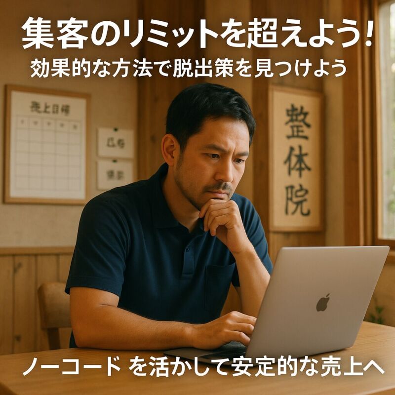 WIXで整体院のホームページを作って半年、毎日ブログを更新してSNSも頑張っているのに、問い合わせは月2〜3件で頭打ち。そんな状況に心当たりはありませんか? 特に最近、近所の競合店がWordPressサイトをリニューアルして検索順位で完全に抜かれてしまった時、「このままでは本当にまずい」と感じたはずです。ノーコードツールの手軽さに惹かれて始めたものの、今度はその制約が足かせになっている現実。 正直に言うと、ノーコードホームページには明確な集客限界があります。しかし、だからといって諦める必要はありません。実は、今の状況から確実に脱出する方法が存在します。 この記事では、ノーコードの限界を正しく理解し、費用対効果を最大化しながら集客を改善する具体的な手順をお伝えします。50万円のリスクを冒さずとも、段階的にレベルアップしていく現実的な道筋があります。 来月の売上目標達成と安定的な集客を実現するために、まずはノーコードの本当の限界を知ることから始めましょう。 10年間で300社以上のWeb集客を支援してきた経験から言うと、あなたの状況は決して珍しくありません。むしろ、今が集客力を大きく伸ばす絶好のタイミングなんです。 -
