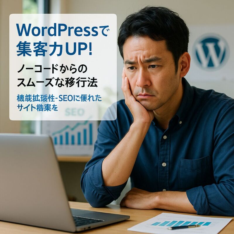Wixで作ったサイトでどんなに努力してもSEO順位が上がらず、月間売上の減少に歯止めがかからない状況にお悩みではありませんか。 実は、この問題の根本原因はあなたのスキル不足ではなく、ノーコードツール自体の構造的限界にあります。SEO最適化の自由度が低く、サイト表示速度やカスタマイズ性に制約があるため、どれだけ頑張っても競合他社のWordPressサイトに勝てないのが現実です。 しかし、適切な移行戦略さえ知っていれば、WordPressへの乗り換えでSEO評価を維持しながら売上を大幅に向上させることは十分可能です。 この記事では、ノーコードツールの限界を突破し、データ移行時のSEO評価低下リスクを回避しながら、WordPress移行で売上3倍を実現する具体的手順をお伝えします。移行時の技術的不安や想定外の費用発生も含め、失敗パターンを事前に回避する実践的なノウハウをすべて公開いたします。 まずはノーコードツールが抱える構造的な問題点を正しく理解することから始めましょう。根本原因が分かれば、解決策も見えてきます。 -